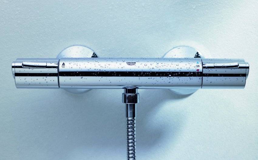 Немецкий бренд Grohe предлагает самый широкий ассортимент изделий, которые отличаются высоким качеством исполнения, надежностью и долговечностью. В каталогах продукции представлены смесители с термостатом Grohe, имеющие различное оформление и разнообразные опции. Фирма выпускает целую линейку устройств уникального дизайна, которые представляют собой настоящие произведения искусства. Благодаря хромированному покрытию корпуса из латуни обеспечиваются гигиеничность и привлекательный внешний вид смесителя Grohe с термостатом для душа.
