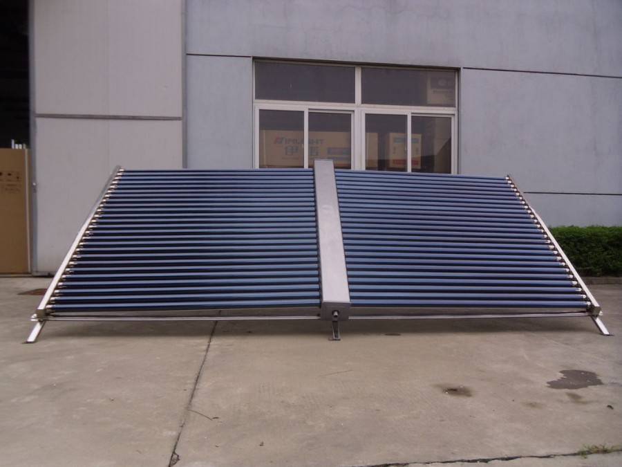 Существуют также более современные виды коллекторов, в которых используется принцип теплового насоса — в герметичной емкости находится легкоиспаряемая жидкость. Нагреваясь от солнечного тепла, она испаряется. Этот пар поднимается в конденсационную камеру и оседает на стенках, выделяя при этом много тепловой энергии. По ту сторону стенок создана водяная рубашка, которая принимает это тепло и направляется в систему отопления.