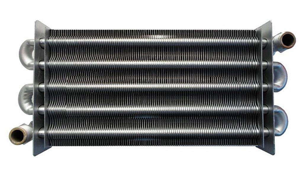 Наиболее непопулярные в виду еще более высокой стоимости или технической невозможности установки медные теплообменники. Несмотря на относительную устойчивость к коррозии, медь, как и сталь, характеризуется вероятностью прогорания. К счастью, множественные системы безопасности дорогостоящих моделей котлов, в которых применяются медные теплообменники, практически гарантированно предотвращают прогорание. Однако длительного срока эксплуатации медных элементов можно достичь лишь при регулярном обслуживании.