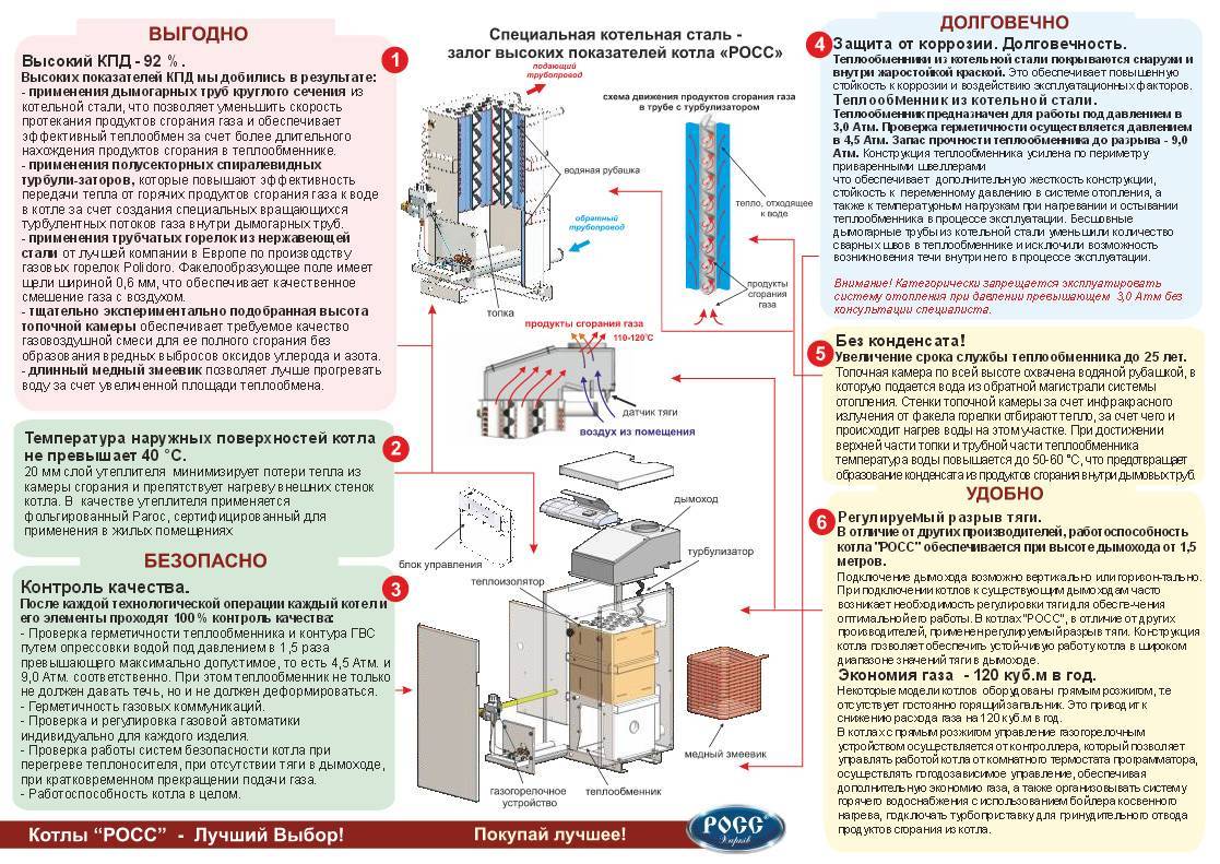 Имеется многоступенчатая защита, медный первичный теплообменник рассчитан на 15 лет службы.