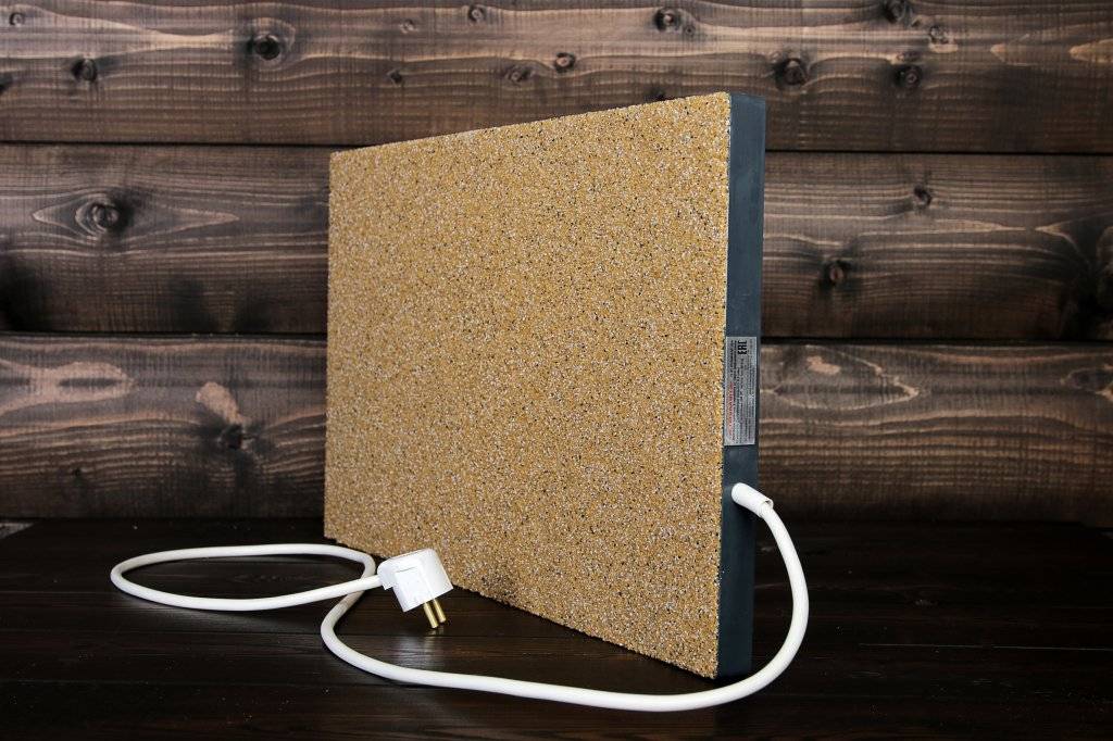 - Экономичность. Спираль не нужно греть постоянно. Плита очень долго отдает тепло, а для большего удобства рекомендуется использовать такой обогреватель вместе с термостатом, который будет вам включать и отключать прибор.