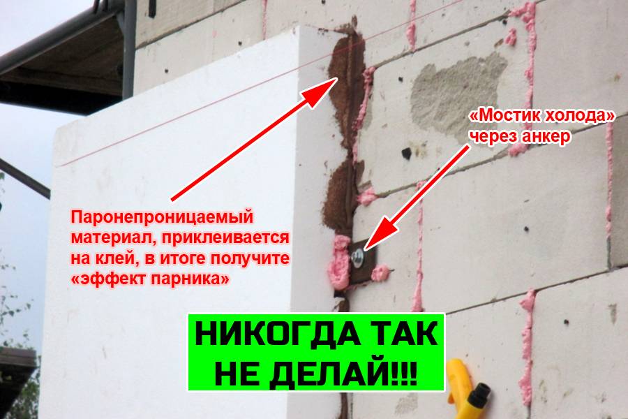 Чтобы утепление полноценно выполняло свои функции на 100%, важно учесть некоторые моменты. Например, стены нельзя теплоизолировать сразу же после возведения дома. Причина – влажность свежего заводского газобетона