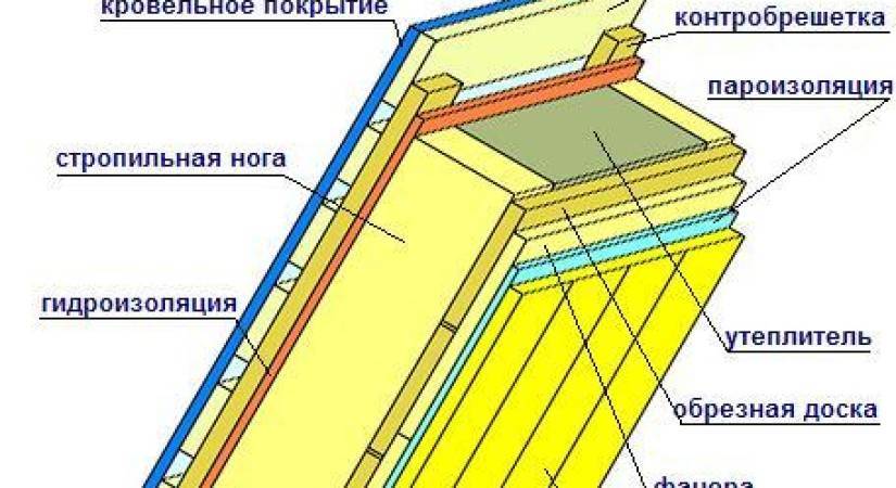 Любая правильно уложенная кровля состоит из определенного последовательного сочетания материалов, формирующих так называемый кровельный пирог или схему утепления кровли.