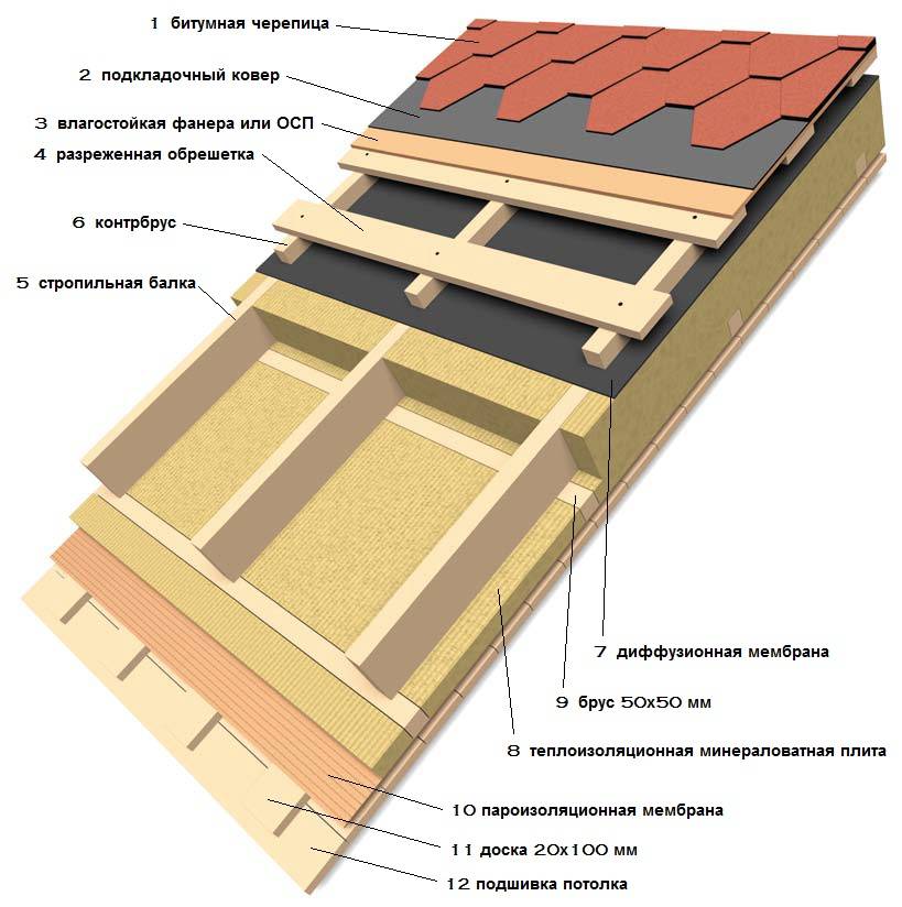 Устанавливая минвату и кровельные материалы, между ними требуется оставить пространство для вентиляции. Кроме того, необходимо позаботиться не только о теплоизоляции, но и шумоизоляции, пароизоляции.