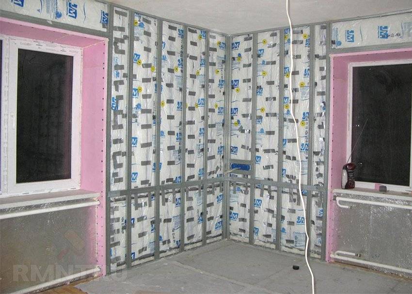 Пример внутреннего утепления угла квартиры минватой по стальному каркасу