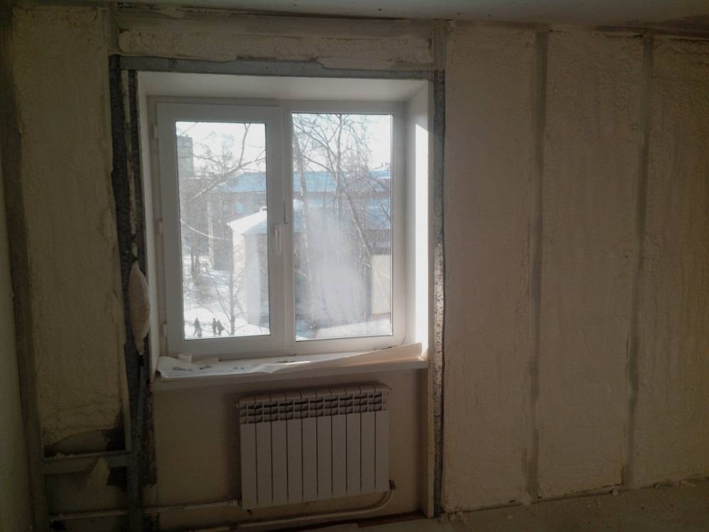 Если холодный воздух проникает в щели между окном и стеной, то, как уже предлагалось выше, можно заделать их герметиком. Но это будет лишь временное решение. Когда морозы отступят, следует провести полный цикл работ по утеплению откосов. Это будет стоить от 10 тыс. руб. на одно окно. Кстати, щели, образовавшиеся под подоконником, также можно вылечить.