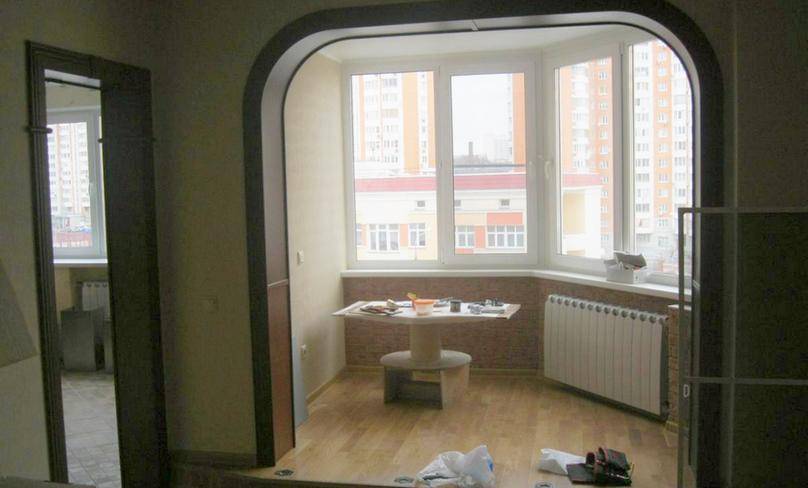 Несмотря на изогнутую форму парапета установка пластиковых окон и её утепление позволяет расширить функциональность пространства балкона.