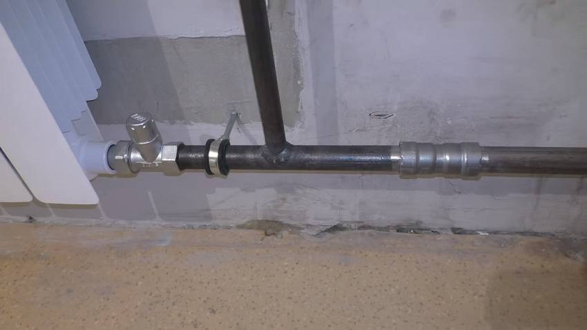 - Трубы срезаются на расстоянии 15-20 см от стояка. На концах делается резьба, к которой прикручиваются переходные фитинги для пластиковой разводки.