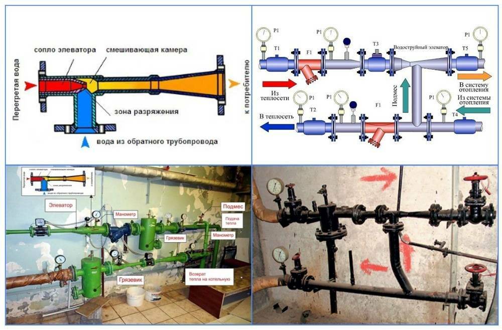 Рис. 8 Элеваторный узел – схема и внешний вид